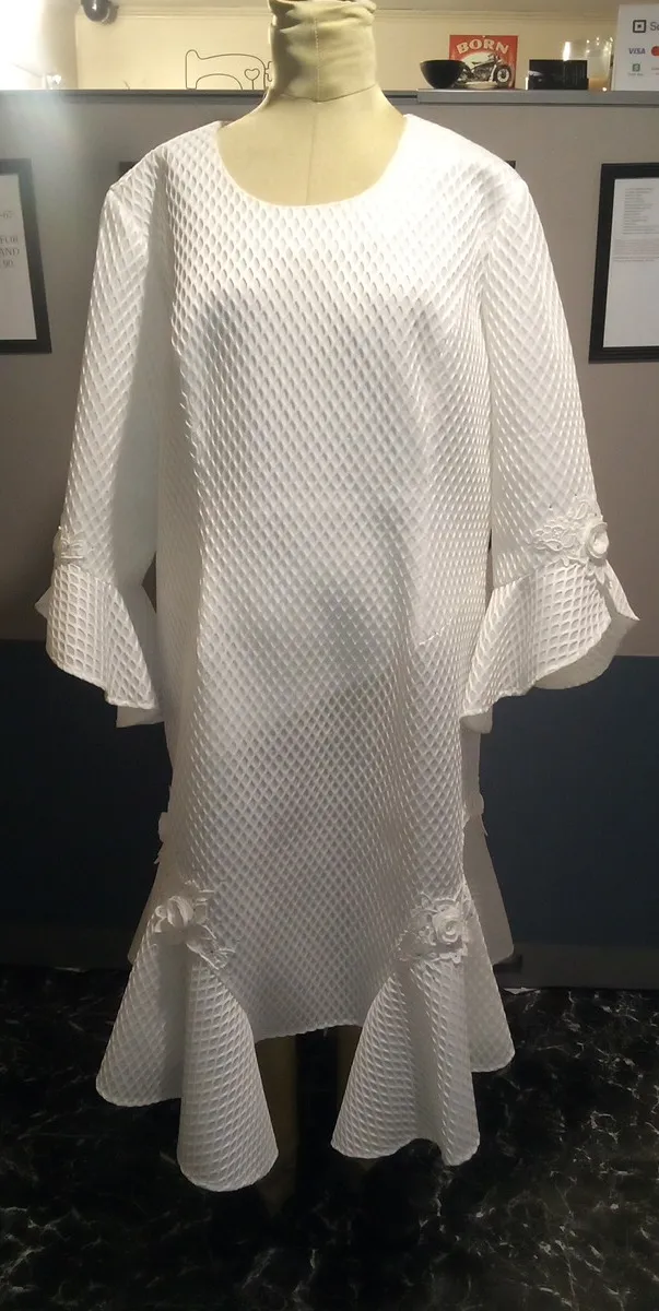 White Lined Waffle Dress